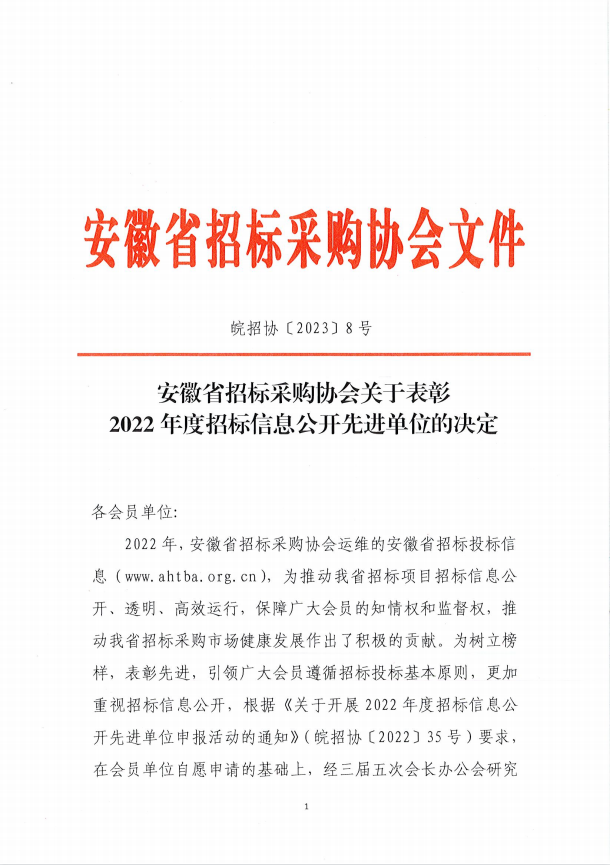 熱烈祝賀安徽和正工程咨詢有限公司---榮獲2022年度招標(biāo)信息公開先進單位