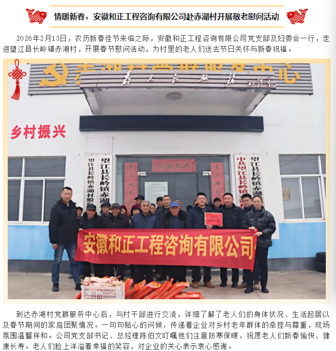 情暖新春:安徽和正工程咨詢有限公司赴赤湖村開展敬老慰問活動